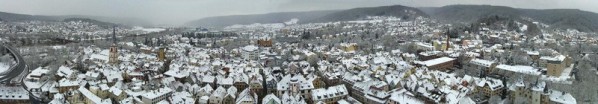 Malerischer Winterzauber über der lohrer Altstadt aus 80m Höhe